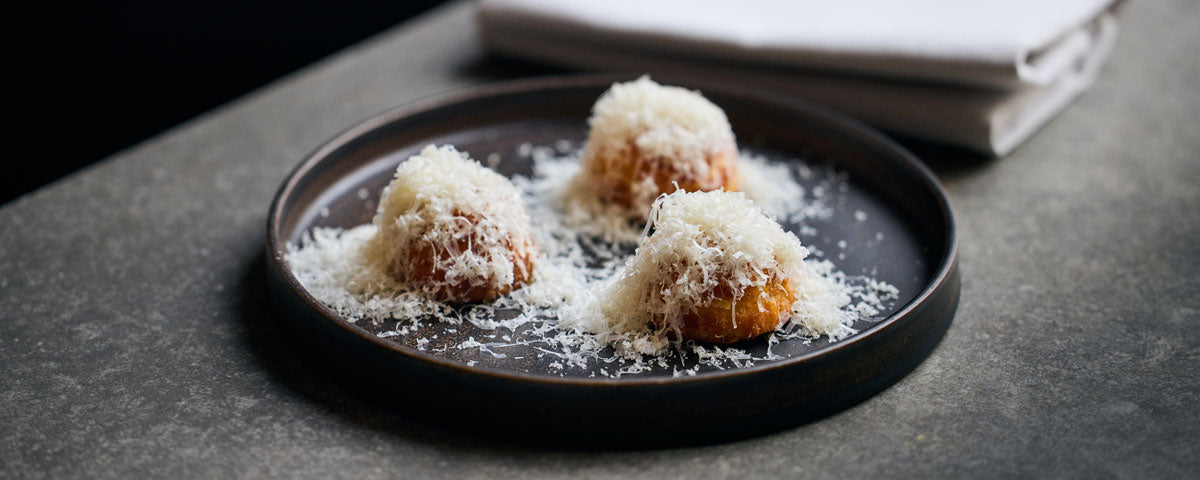 - Gör ett litet hål i varje gougéres, fyll med Kry-kräm. Ju längre in du trycker in spritspåsen desto mer ostkräm får plats.