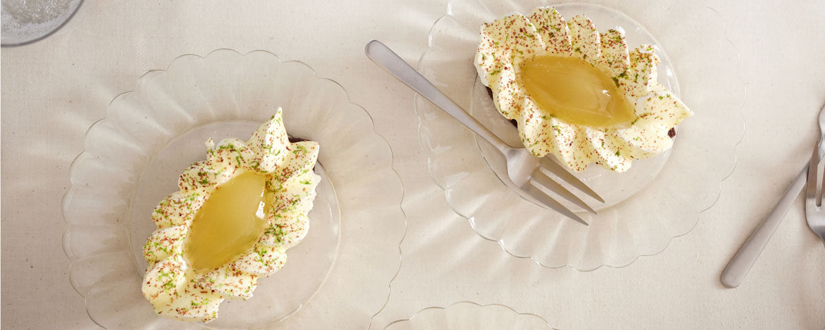 - Doppa marängerna i äggtoddyn och låt rinna av på ett galler. Riv mörk choklad och limeskal över marängen.