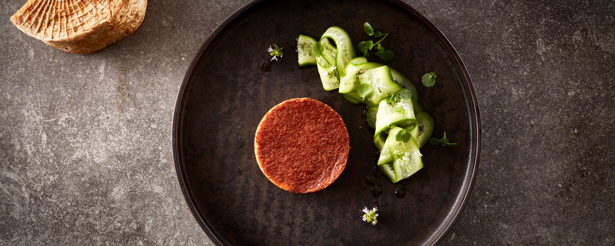 Koka vatten, socker och vinäger till en lag. Låt lagen svalna till högst 45 grader. Skär bort ändorna på gurkan och dela den därefter i tre lika stora delar. Använd en potatisskalare och skär tunna, breda skivor av gurkan. Lägg gurkskivorna, lagen och de färska oreganokvistarna i en plastpåse. Försök få ut så mycket luft som möjligt ur påsen. Tillslut påsen.